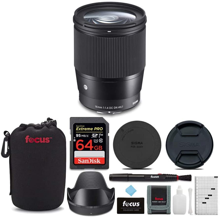 2. Sigma 16mm f/1.4 DC DN Contemporary Lens for Sony with 64GB Extreme PRO SD Card and Accessory Bundle